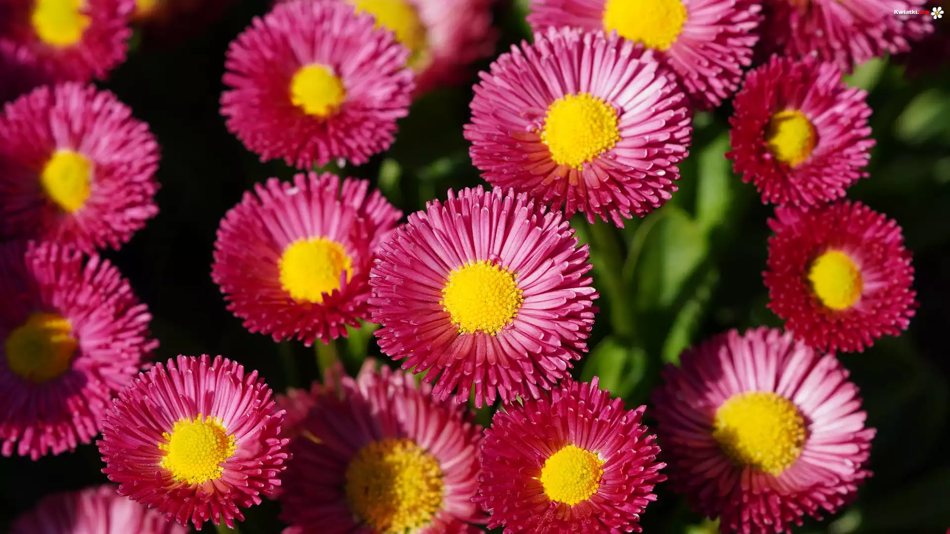 Kwitnące, Ciemnoróżowe, Stokrotki - Zdjęcia