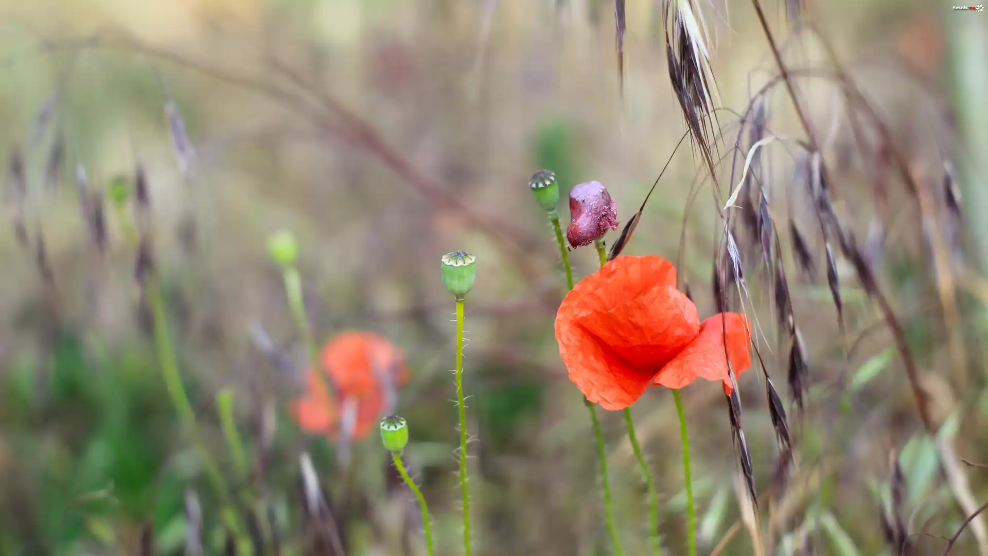 Mak, Makówki, Trawa, Łąka - Zdjęcia