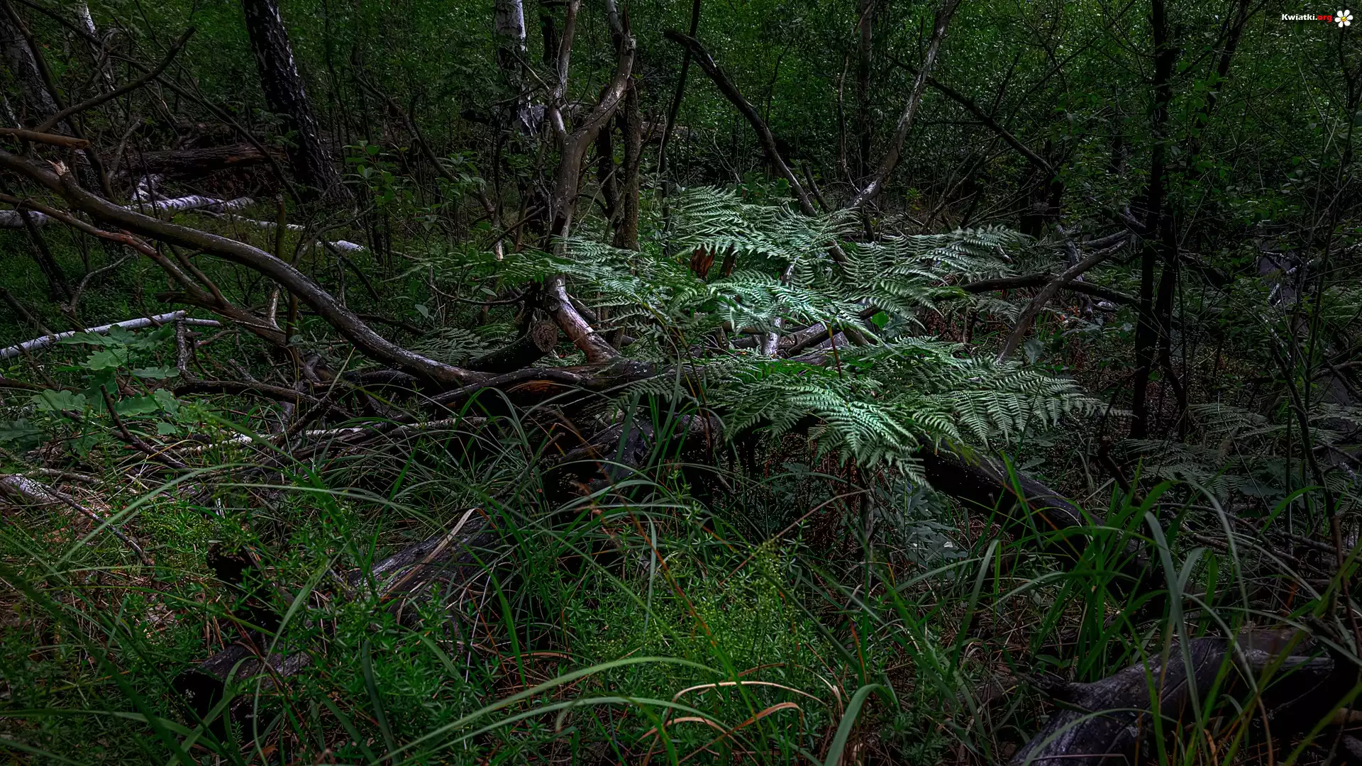 Kwiat Las, Paproć, Drzewa, Trawa