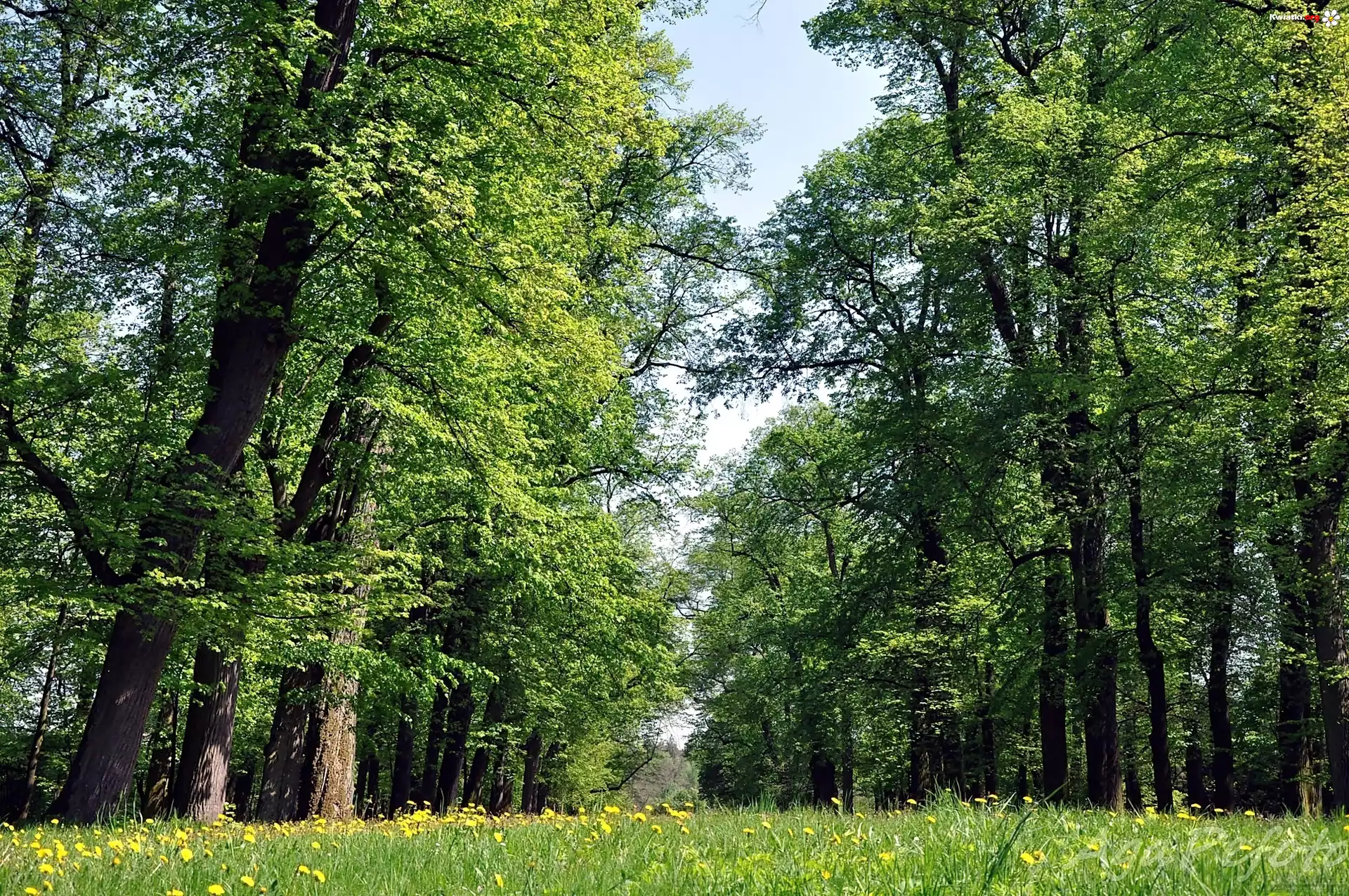 Las, Łąka, Kwitnący, Mniszek - Zdjęcia