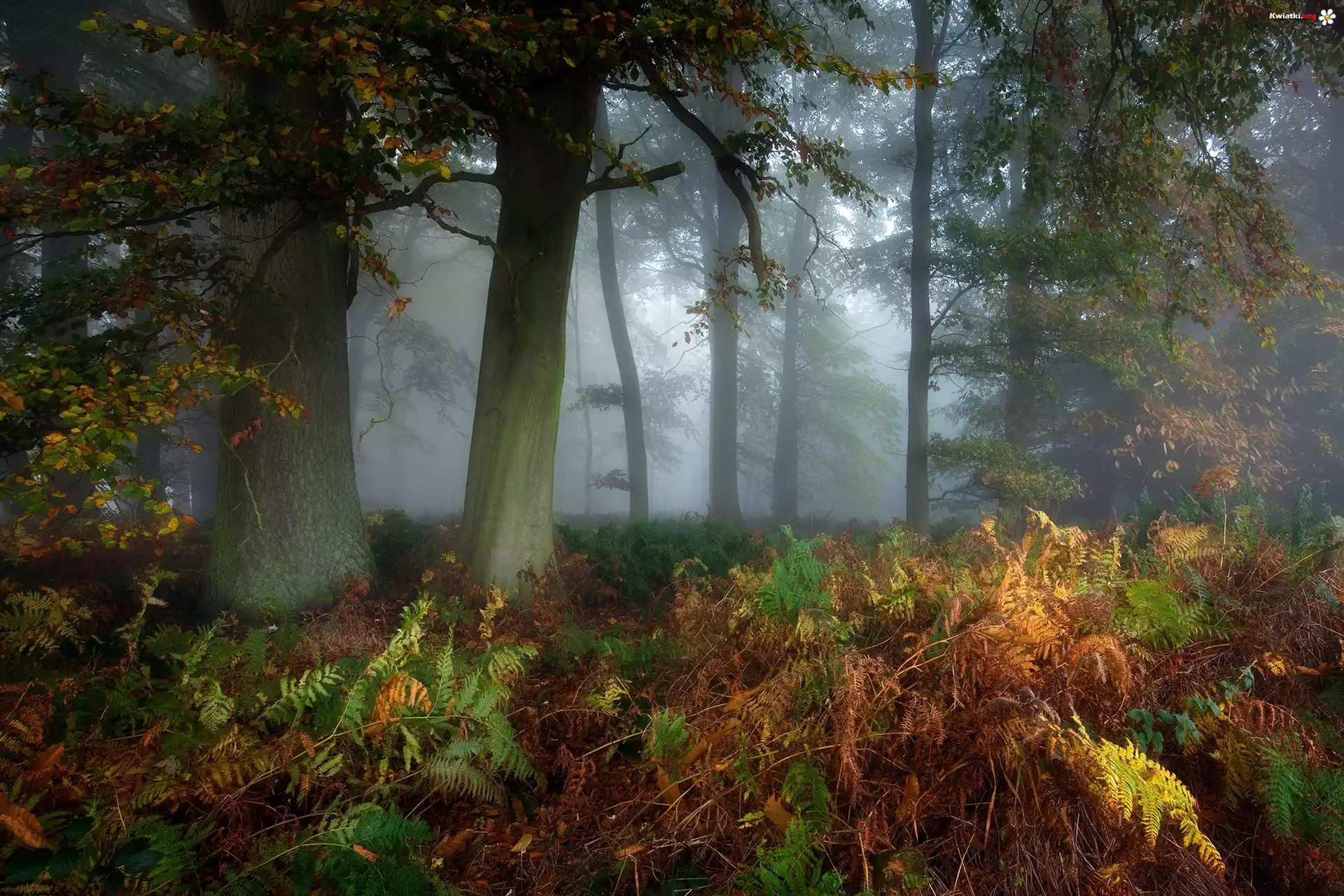 Las, Mgła, Paprocie, Jesień - Zdjęcia