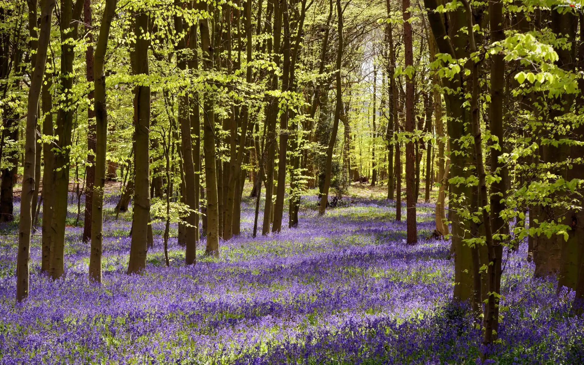 Las, Kwiatki, Przebijające, Światło, Wiosna - Zdjęcia