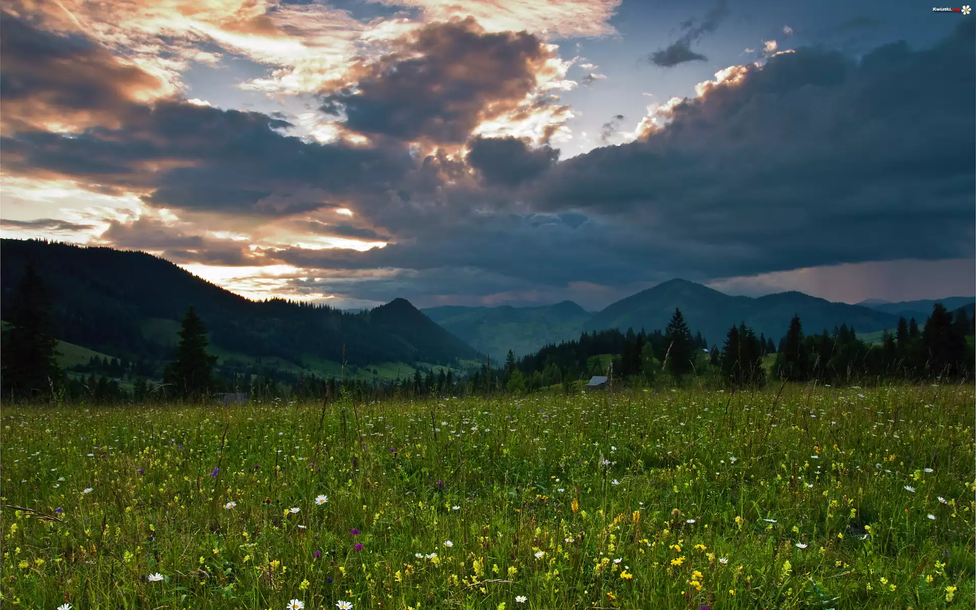 Kwiat Łąka, Kwiaty, Góry, Lasy, Chmury