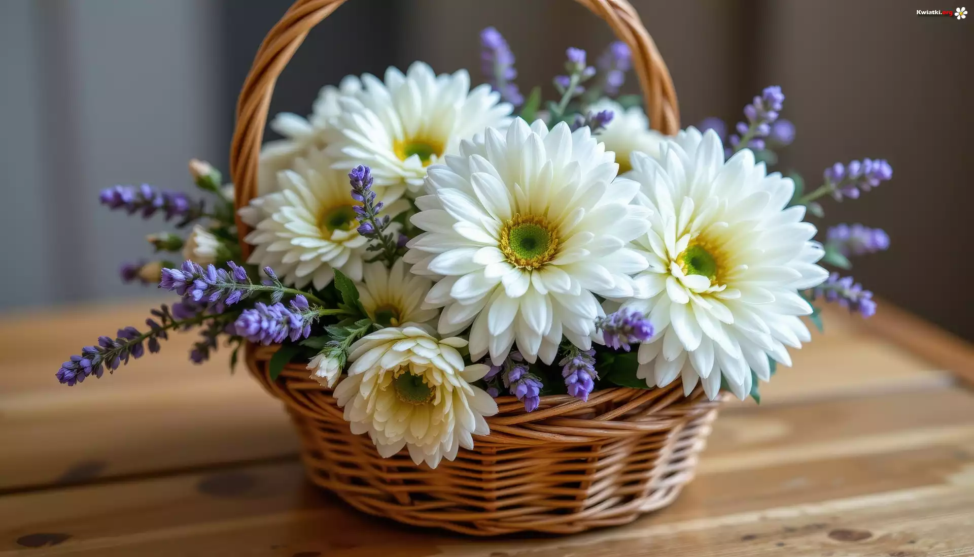 Kwiaty, Chryzantemy, Białe, Lawenda, Koszyk, AI - Zdjęcia