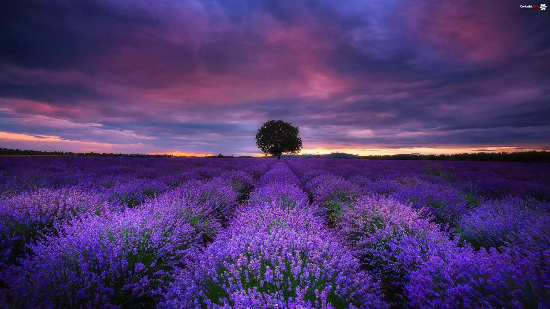 Pole, Lawenda, Drzewo, Kolorowe, Niebo - Zdjęcia