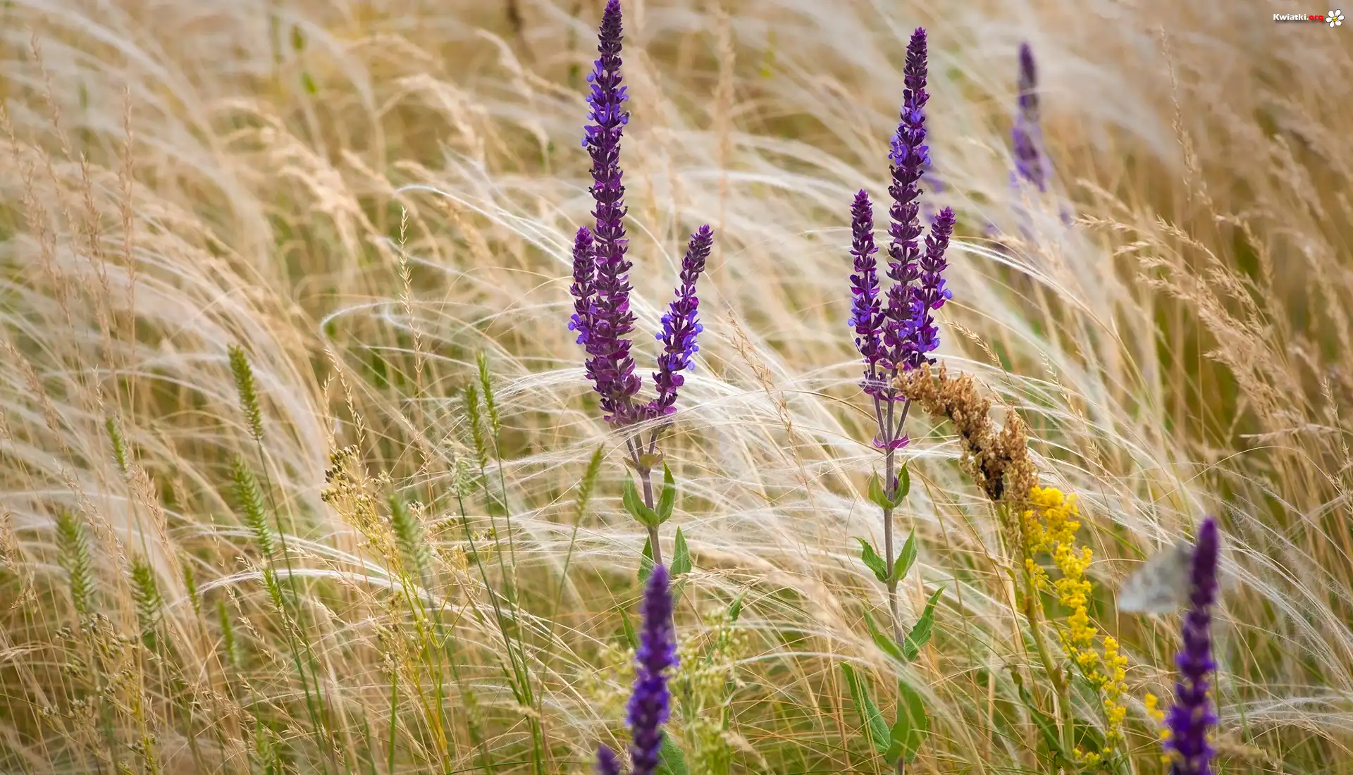 Kwiaty, Lawenda, Trawa - Zdjęcia
