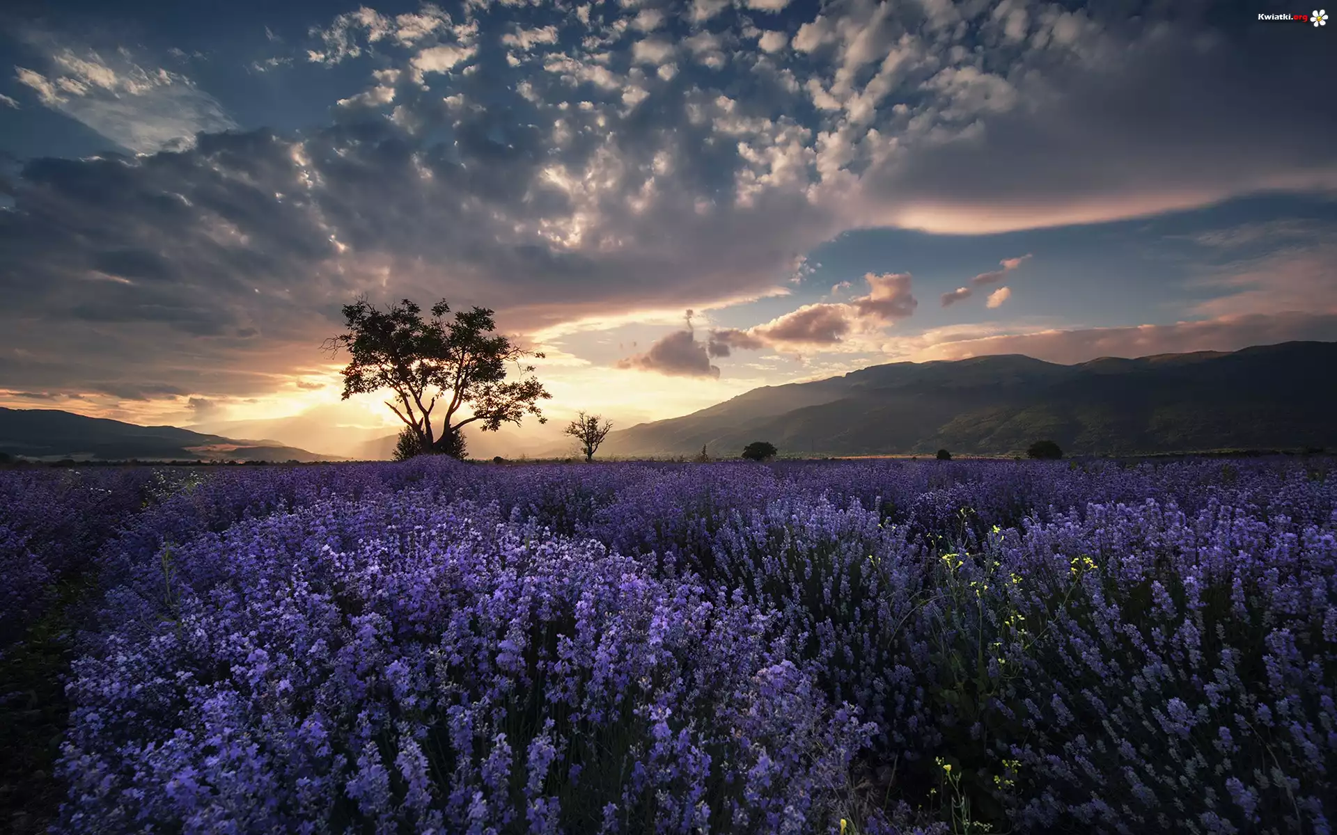 Lawenda, Chmury, Niebo, Drzewo - Zdjęcia