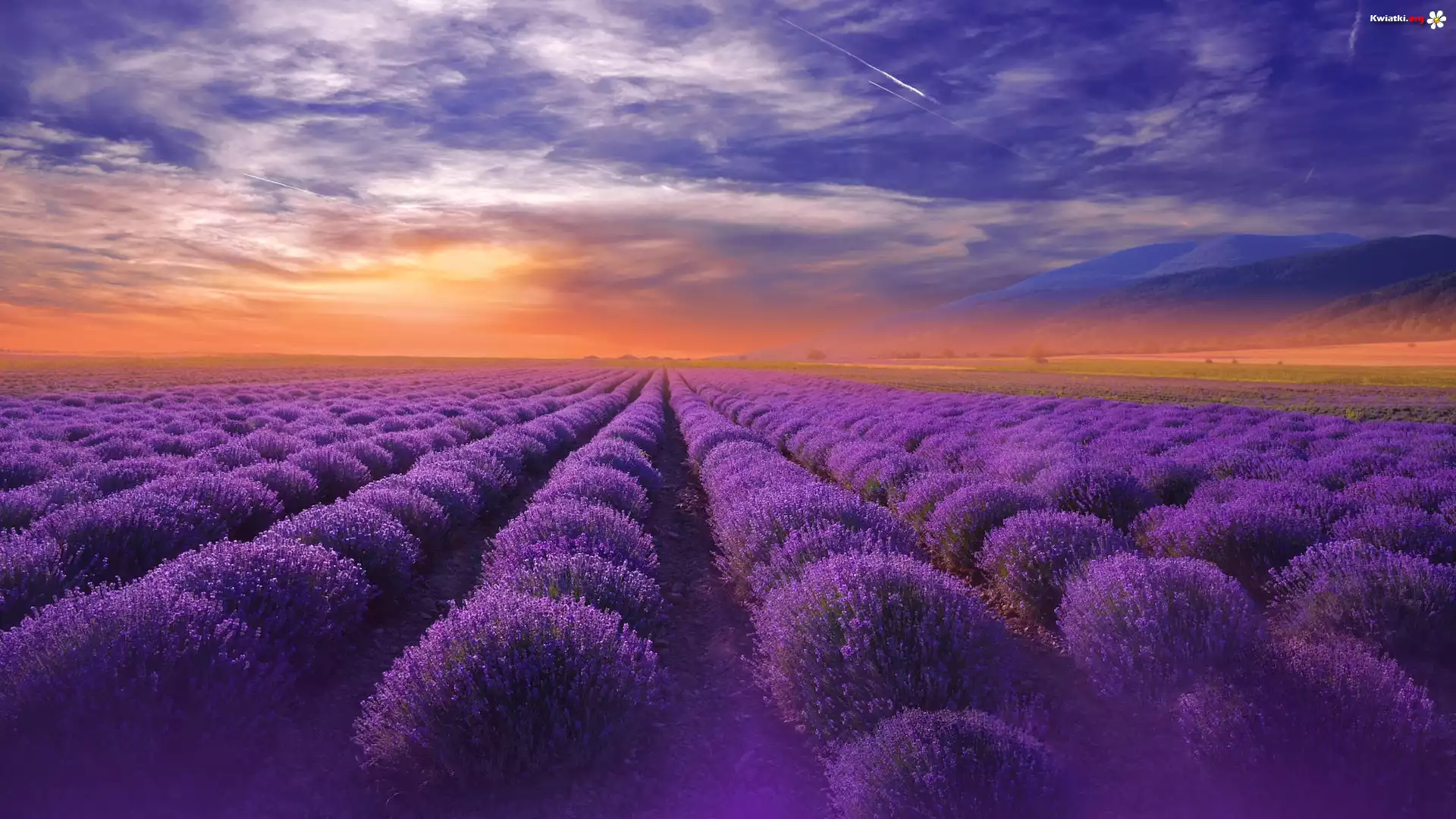 Kwiat Pole, Lawenda, Zachód słońca, Niebo