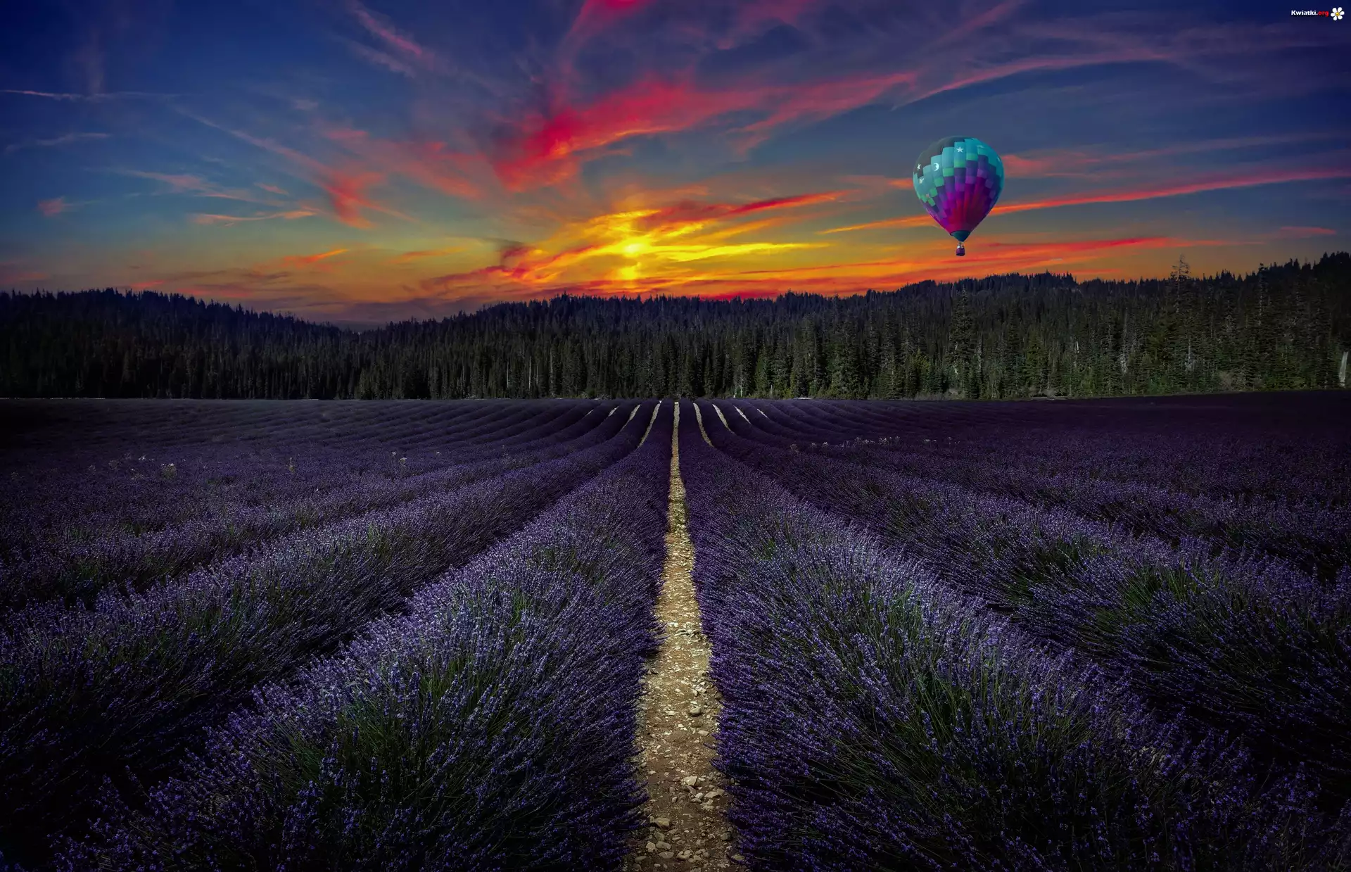 Lawendowe, Pole, Las, Drzewa, Balon - Zdjęcia