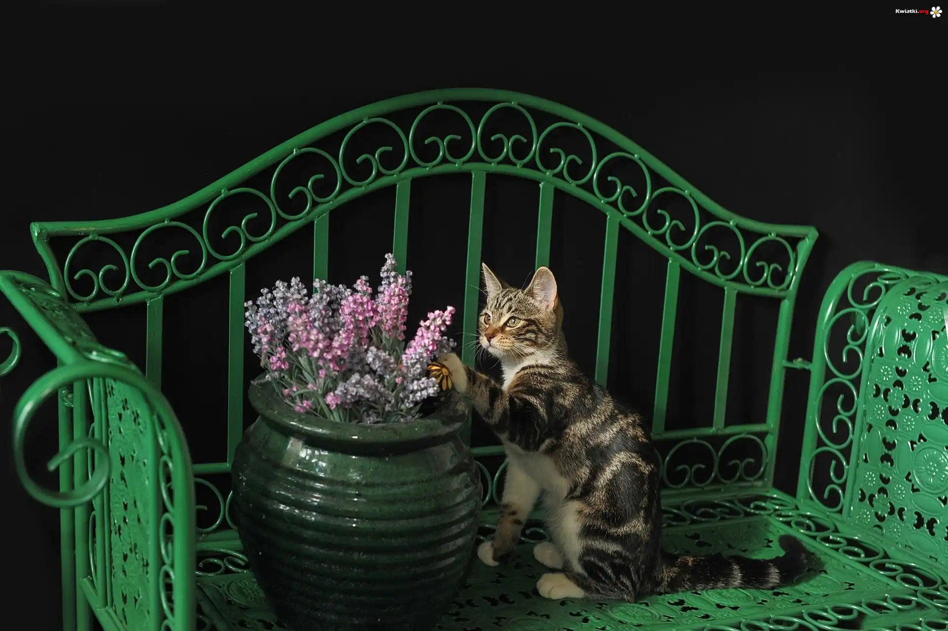 Kot, Lawka, Kwiaty - Zdjęcia