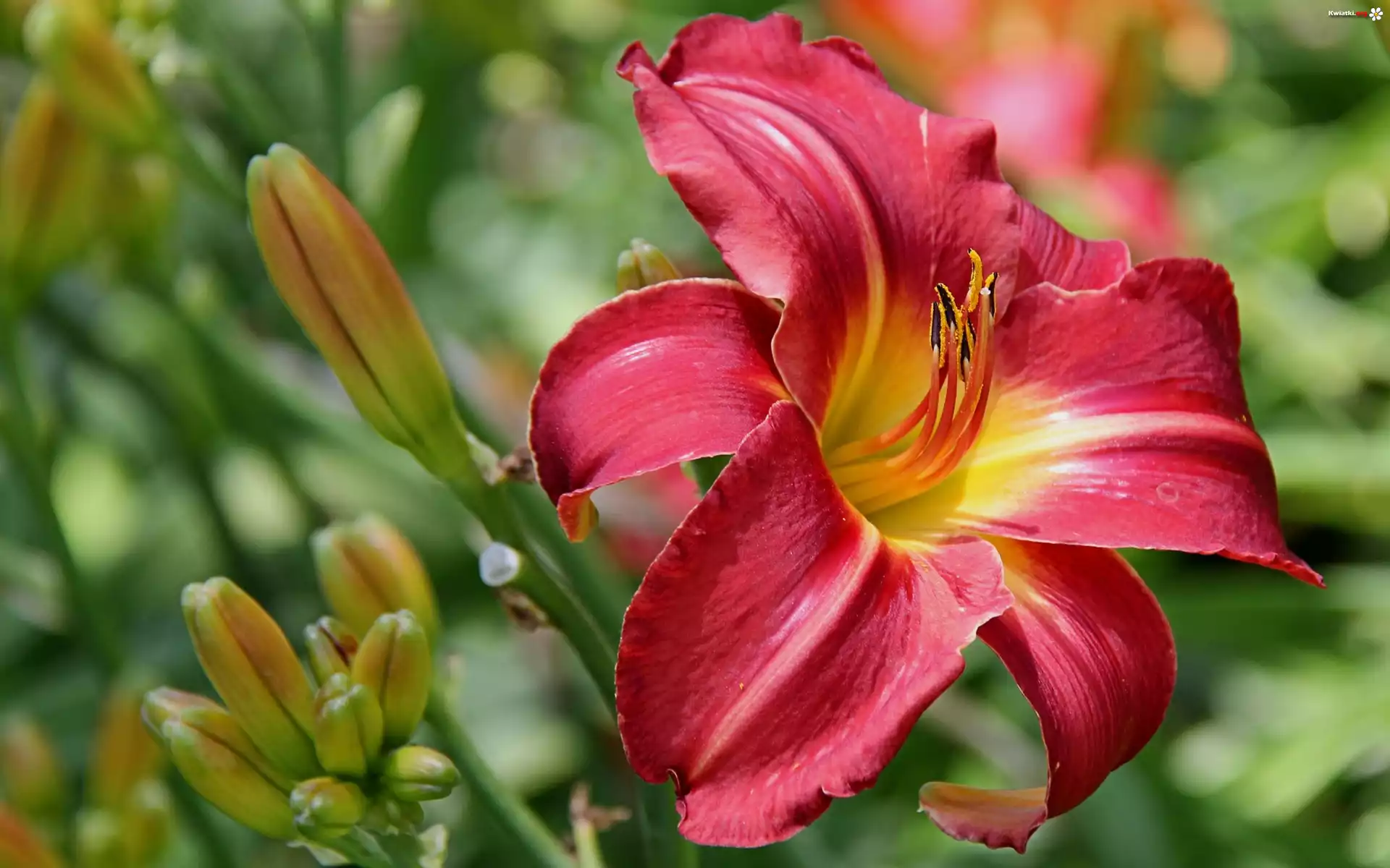 Czerwony, Liliowiec, Pąki - Zdjęcia