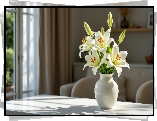Białe, Lilie, Biały, Wazon, Stół - Zdjęcia