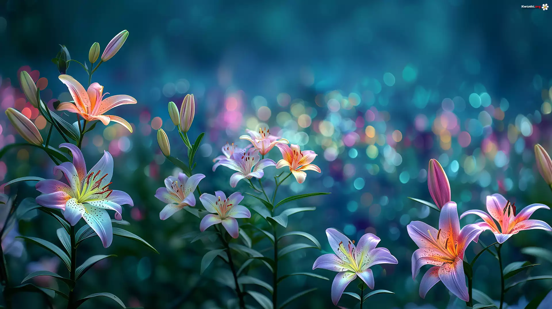 Kwiat Kolorowe, Lilie, Bokeh, Grafika AI