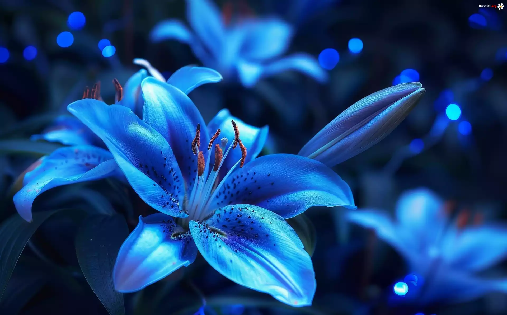 Lilie, Niebieskie, Grafika - Zdjęcia