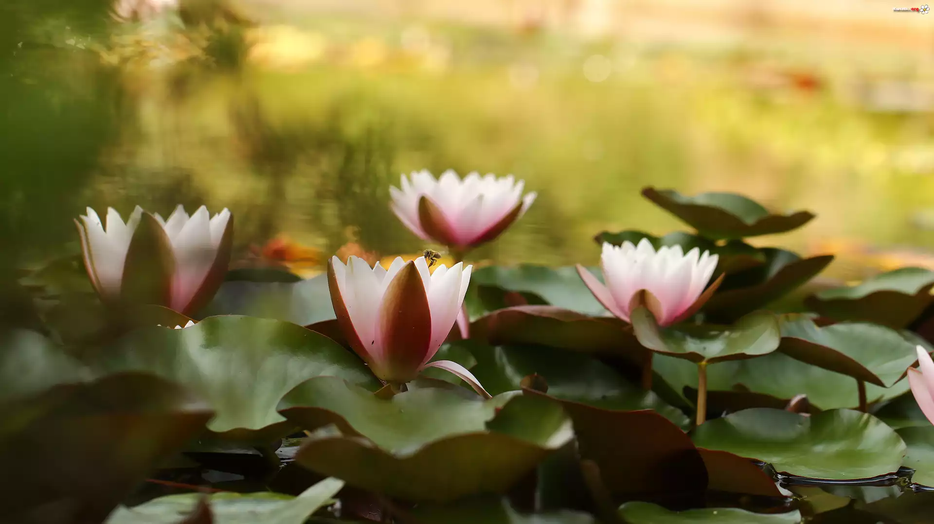 Kwiat Lilie Wodne, Nenufary, Grzybienie, Staw