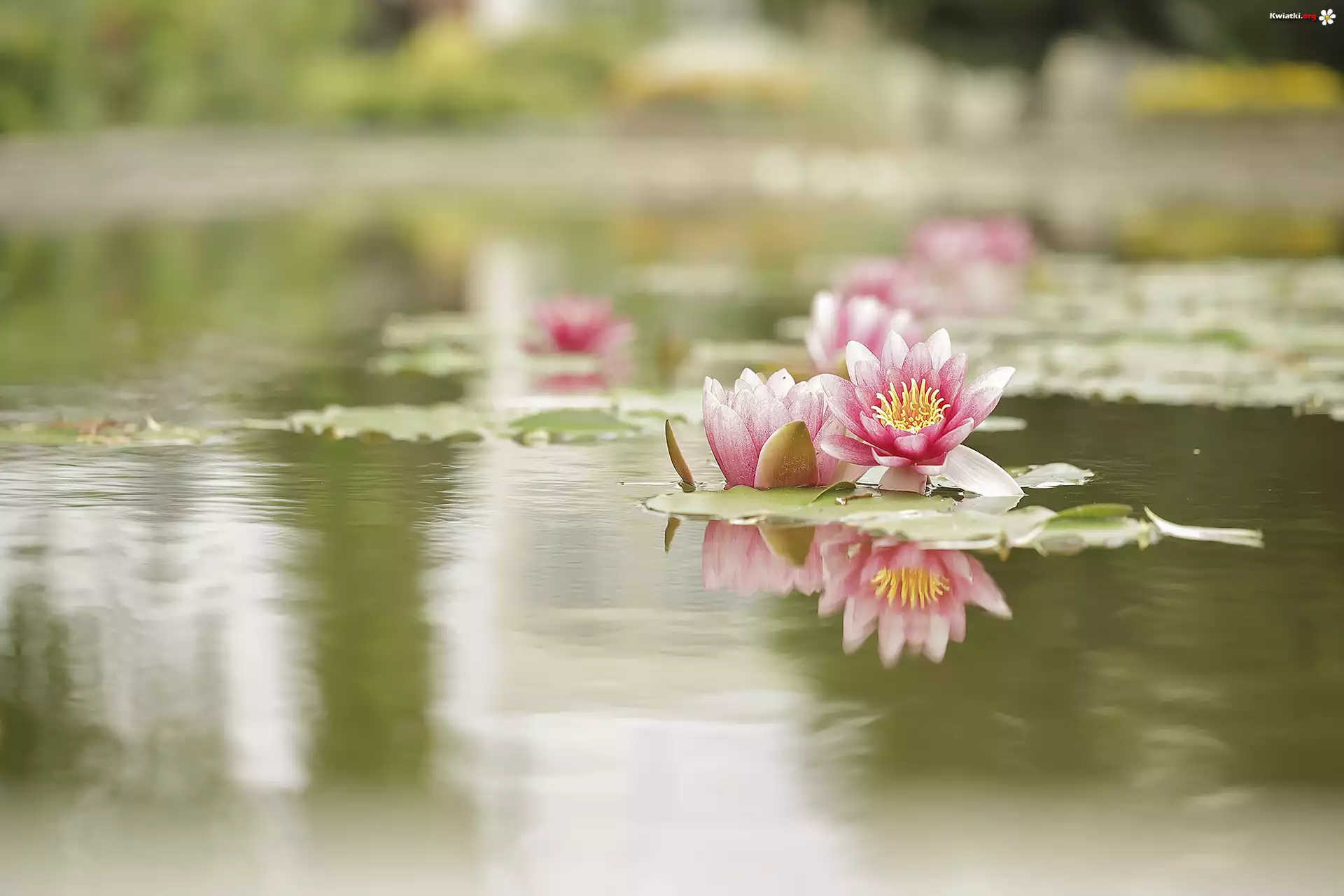 Kwiat Lilie wodne, Nenufary, Grzybienie, Kwiaty, Staw
