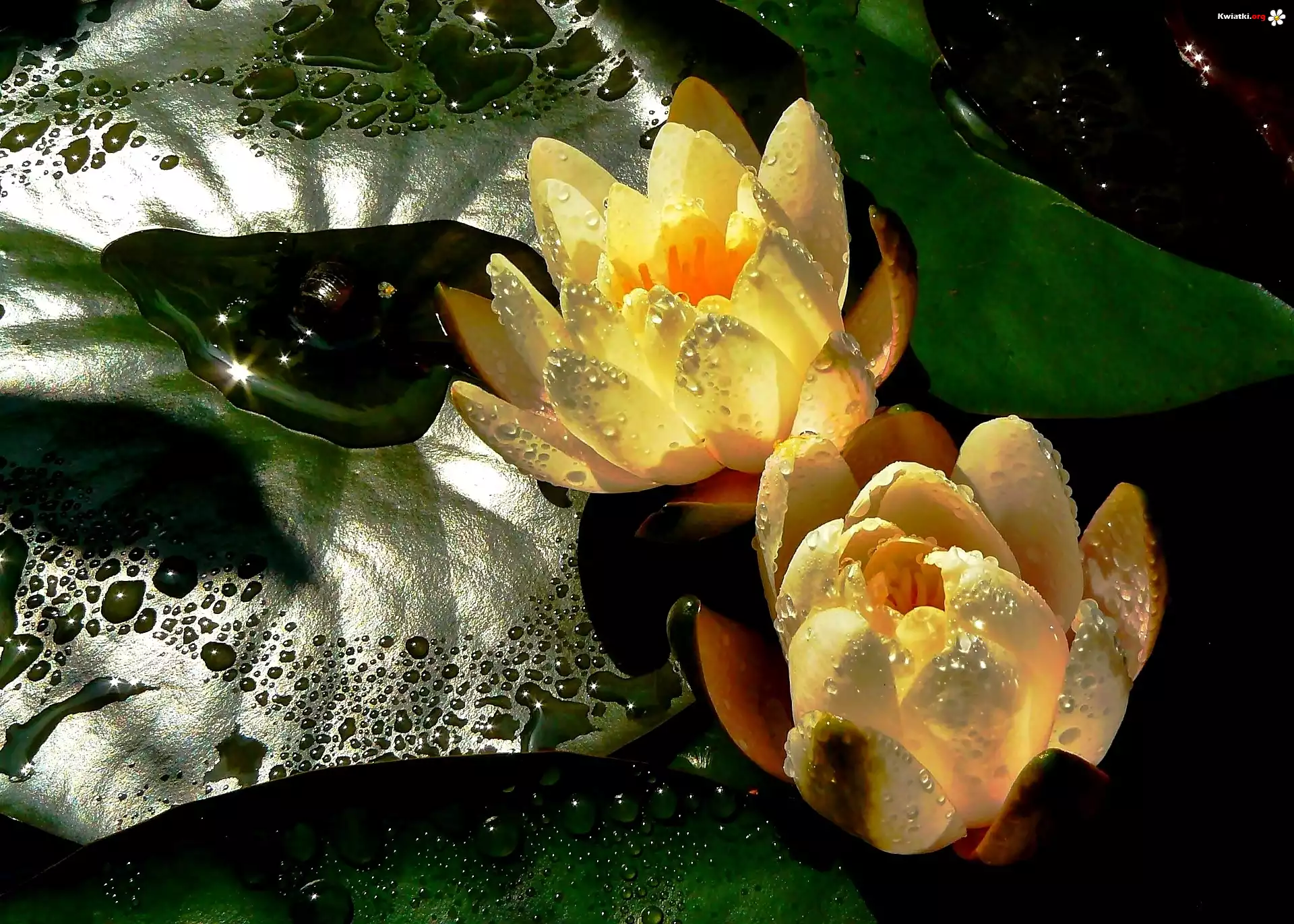 Lilie, Wodne, Liście, Krople - Zdjęcia