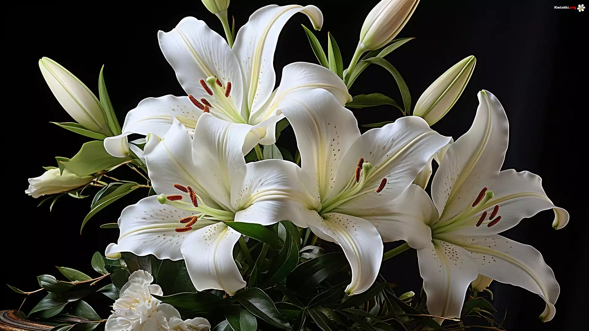Kwiat Białe, Lilie, Pąki, Czarne, Tło