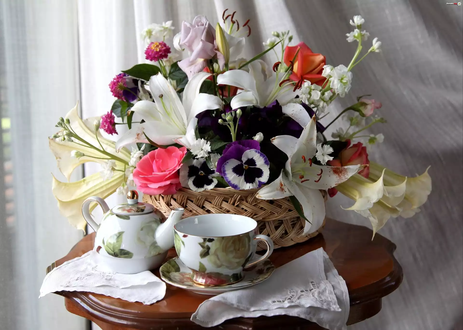 Lilie, Róże, Bratki, Porcelana, Serwetki - Zdjęcia
