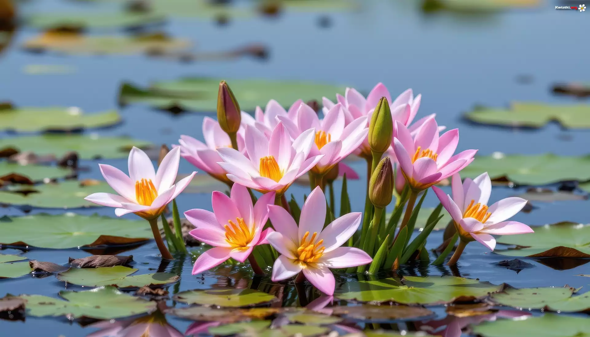 Różowe, Lilie wodne, Woda, Liście - Zdjęcia