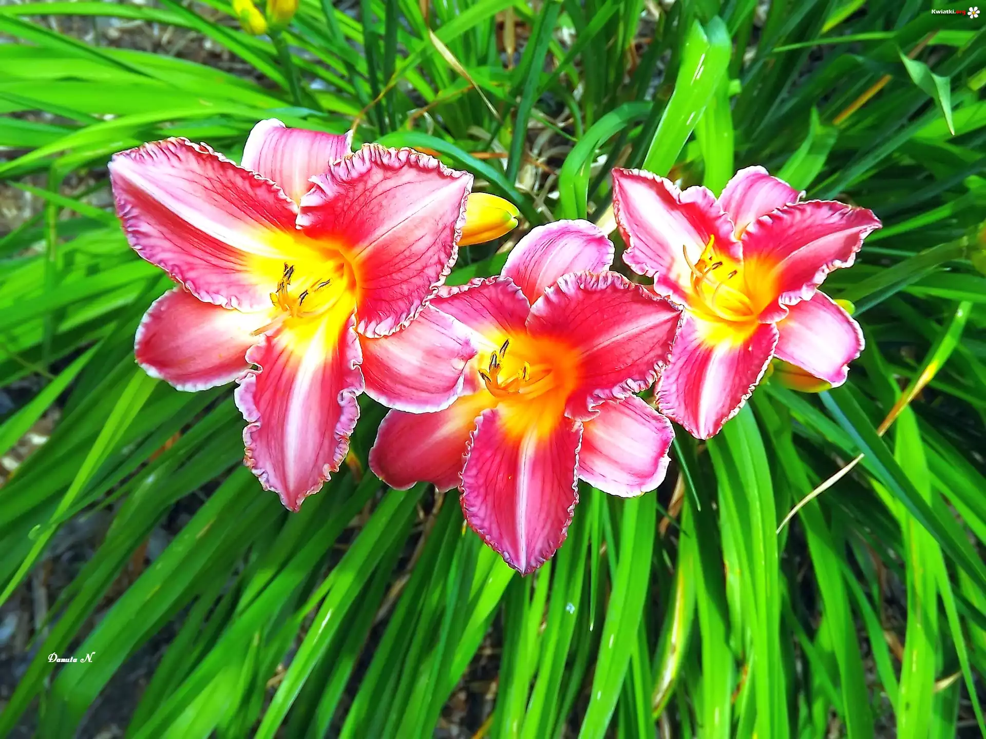 Liliowiec, Dwukolorowy, Pąki, Trawa, Ogród, Lato - Zdjęcia