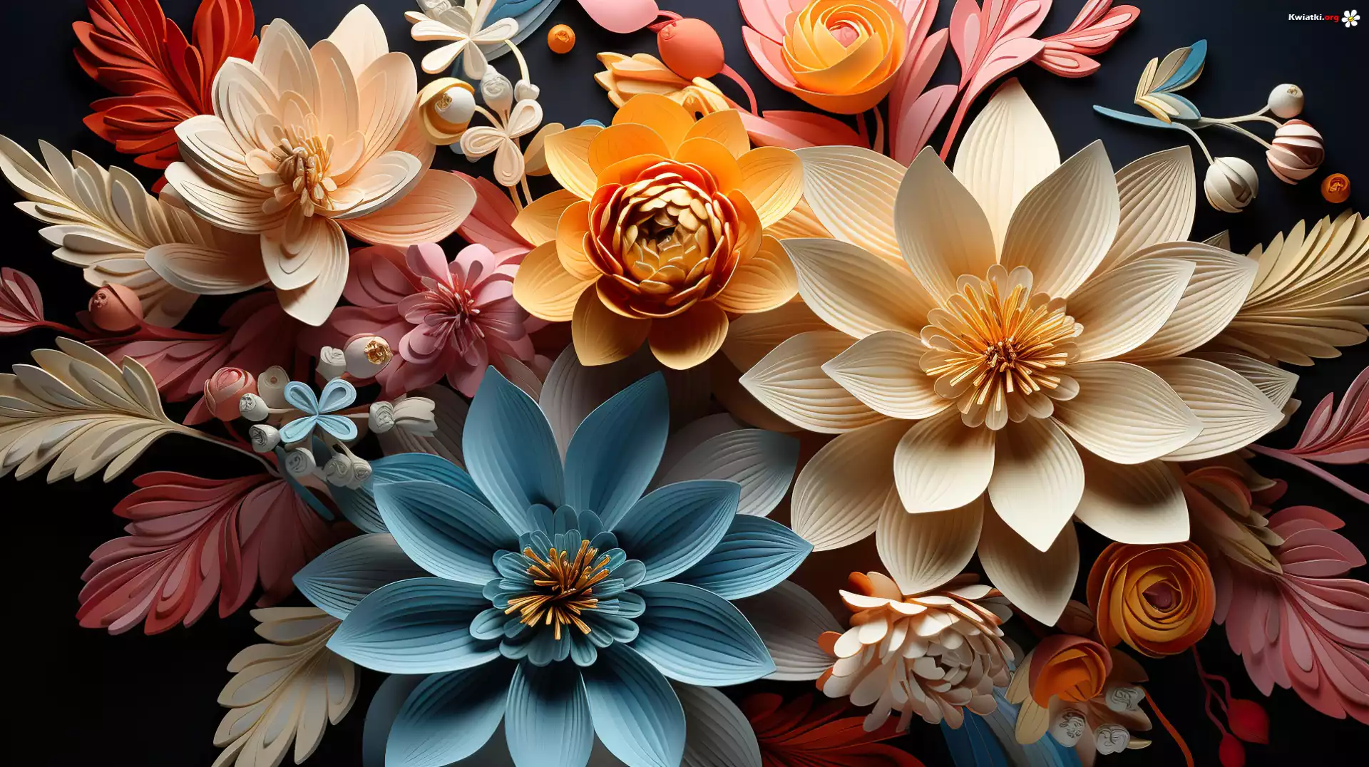 Kwiaty, Kolorowe, Pąki, Liście, Grafika, 2D - Zdjęcia