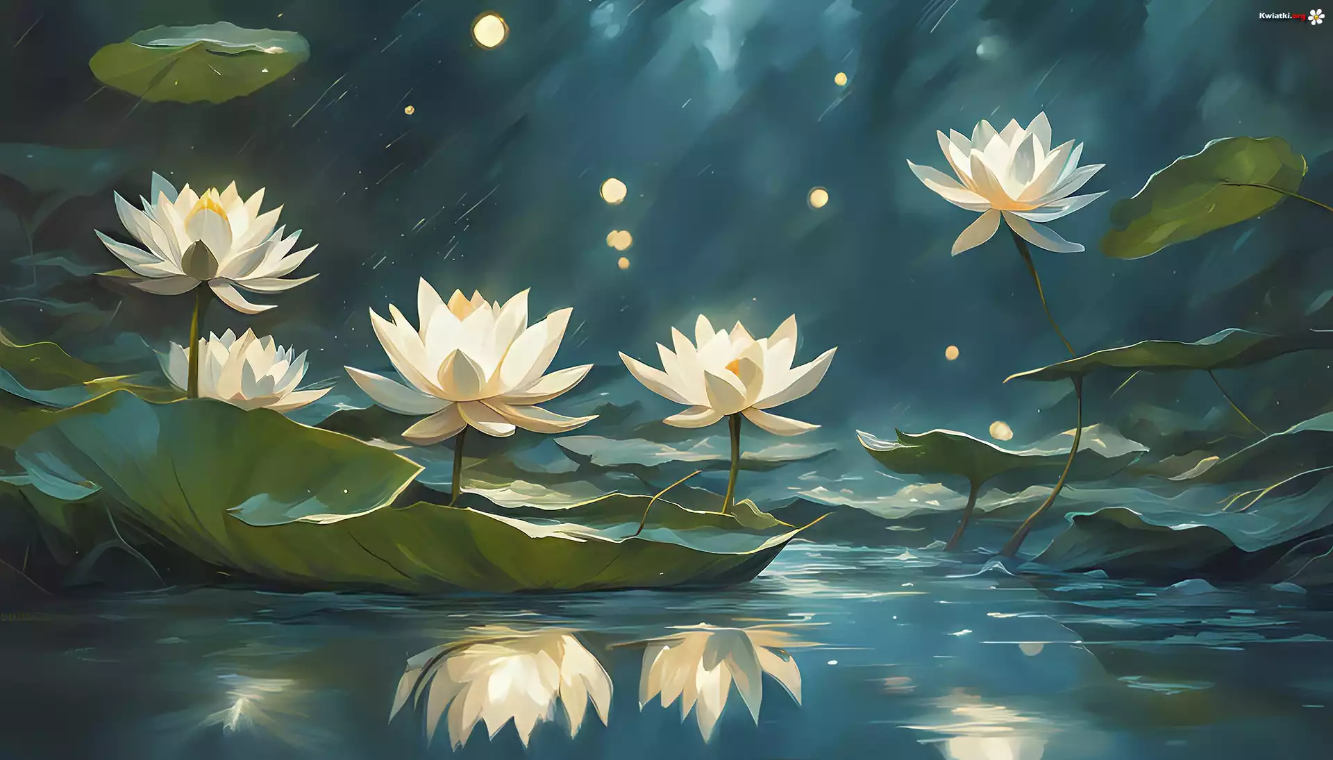 Kwiat Białe, Lilie wodne, Liście, Grafika 2D