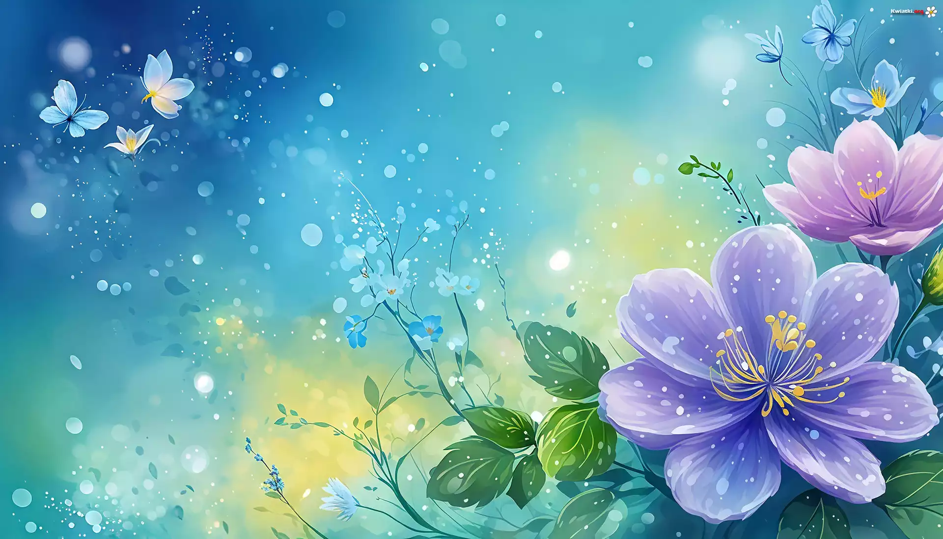 Kwiat Dwa, Fioletowe, Kwiaty, Liście, Grafika AI