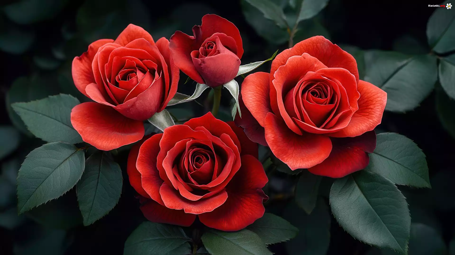 Kwiaty, Czerwone, Róże, Liście, Grafika AI - Zdjęcia