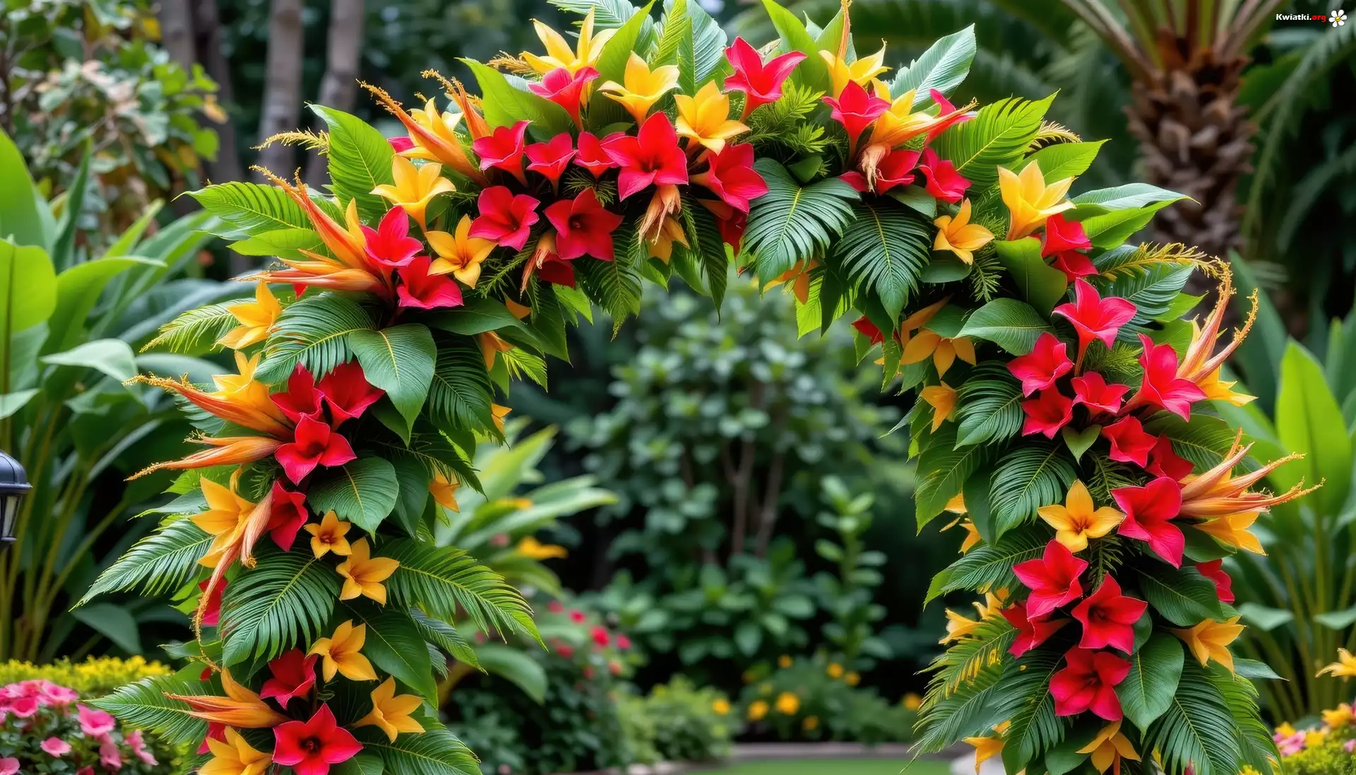 Kwiaty, Czerwone, Żółte, Liście, Łuk, AI - Zdjęcia