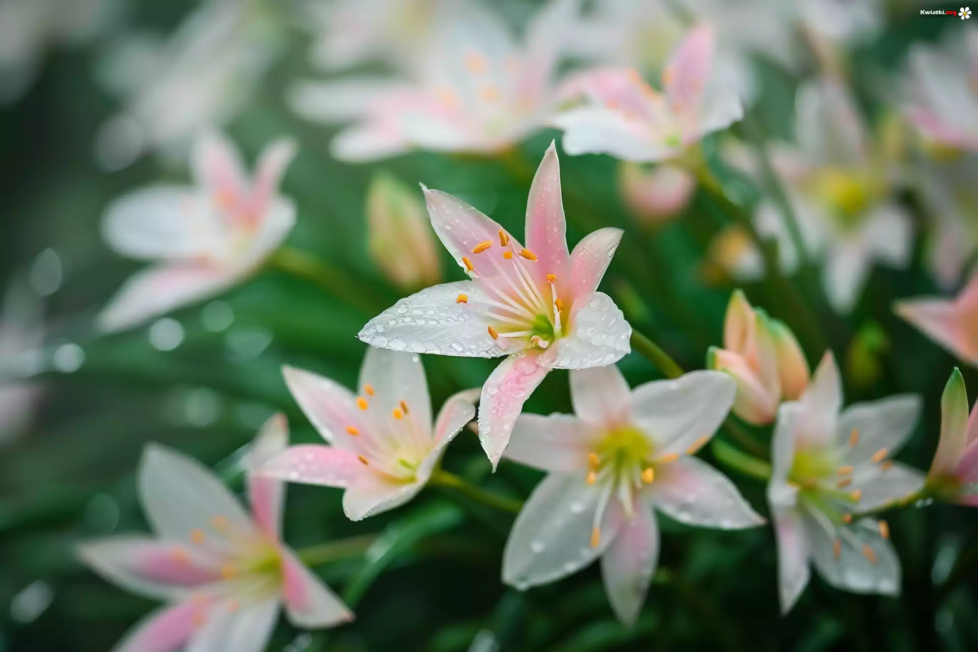 Biało-różowe, Kwiaty, Liście - Zdjęcia