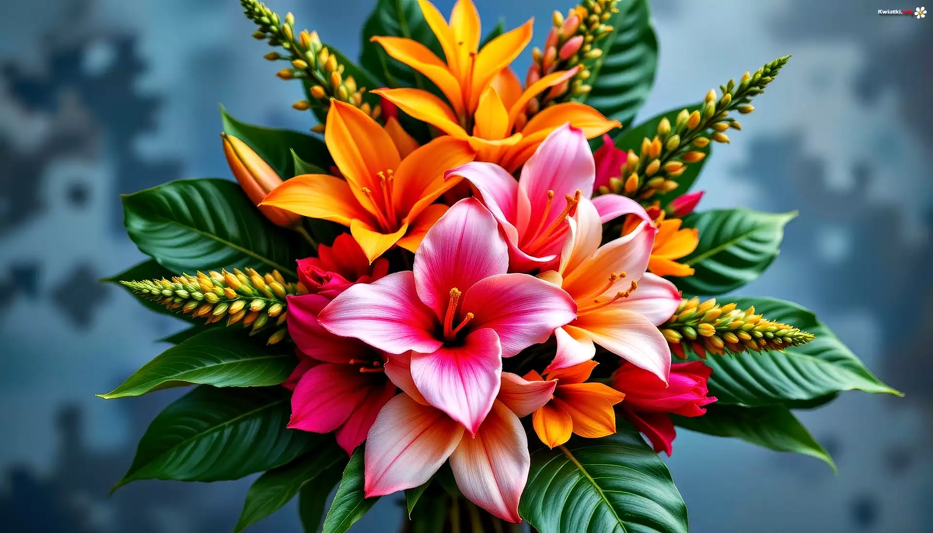 Kwiat Kwiaty, Liście, Bukiet, Grafika AI