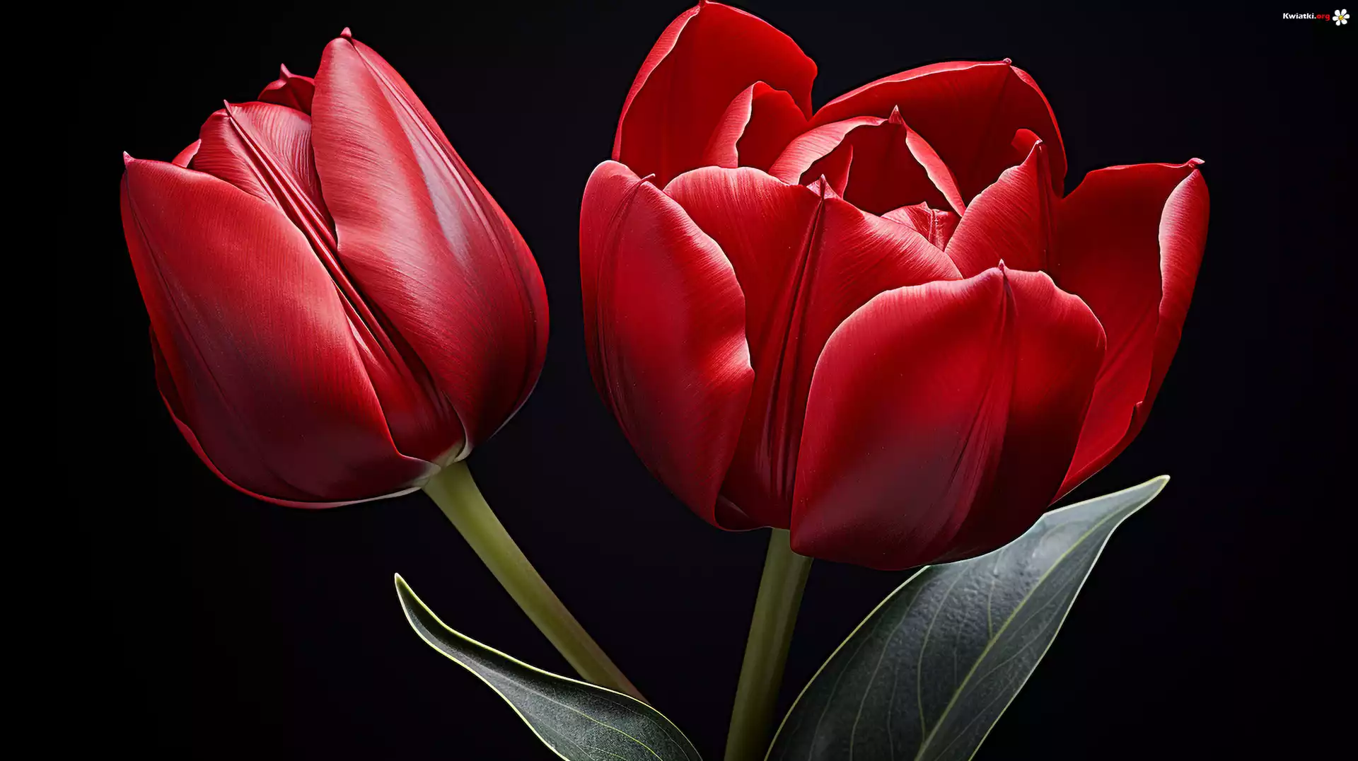 Grafika, Tulipany, Czerwone, Liście - Zdjęcia