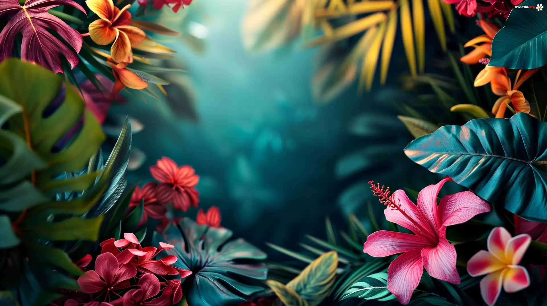 Dżungla, Kolorowe, Kwiaty, Liście, Światło, Grafika - Zdjęcia