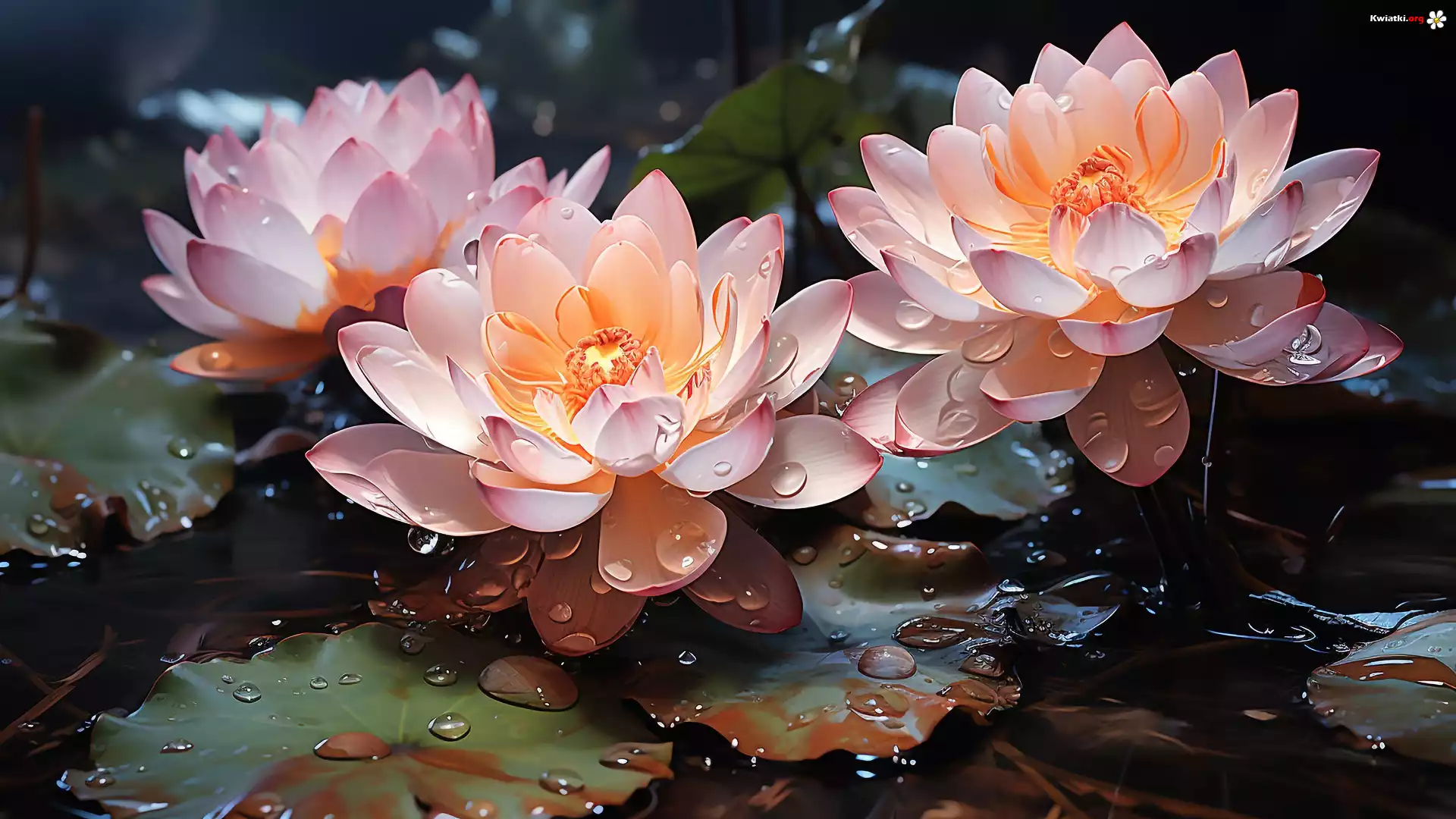 Kwiaty, Lilie wodne, Liście, Krople, Grafika - Zdjęcia