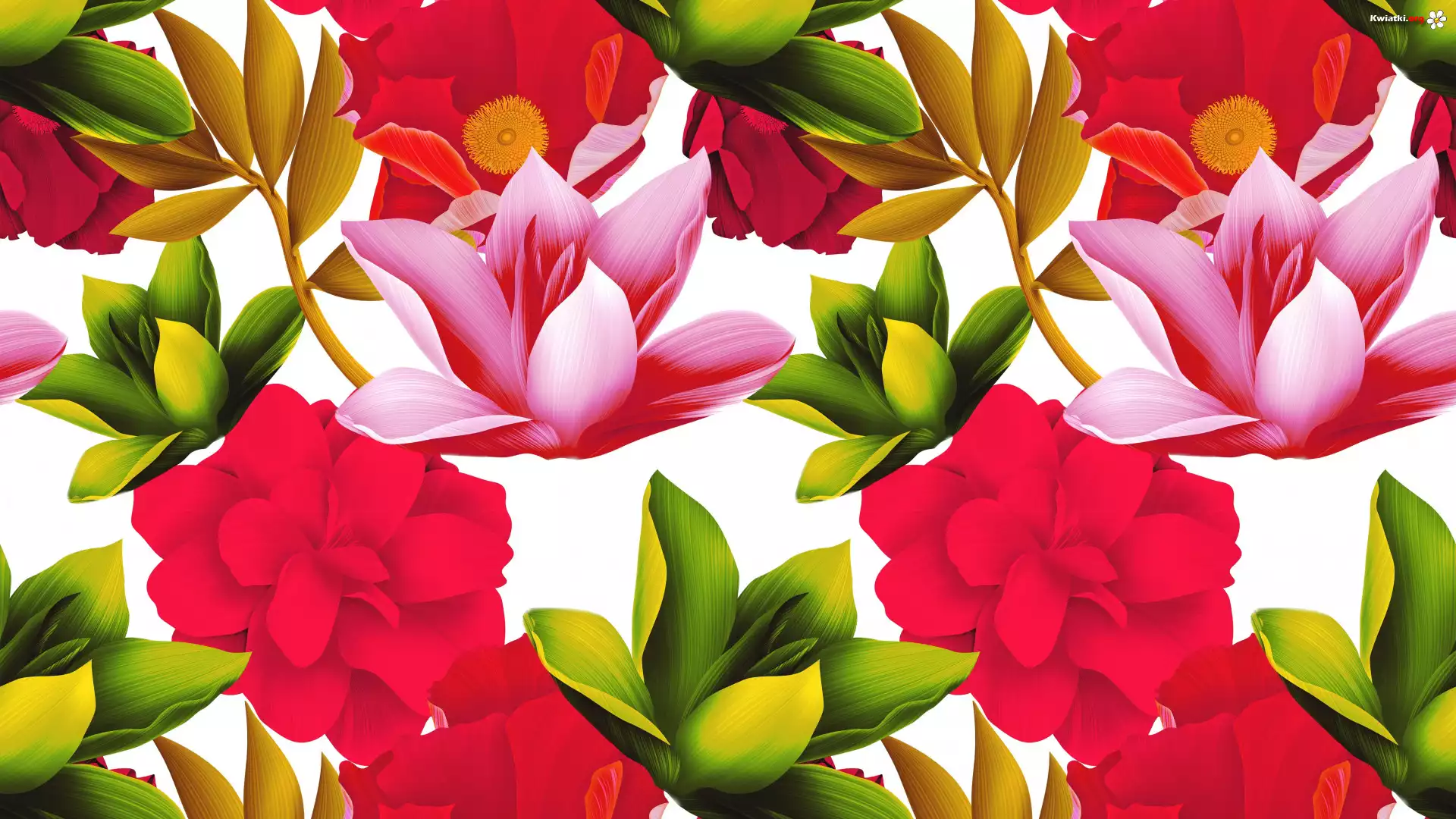 Kwiat Liście, Kwiaty, Kolorowe, 2D