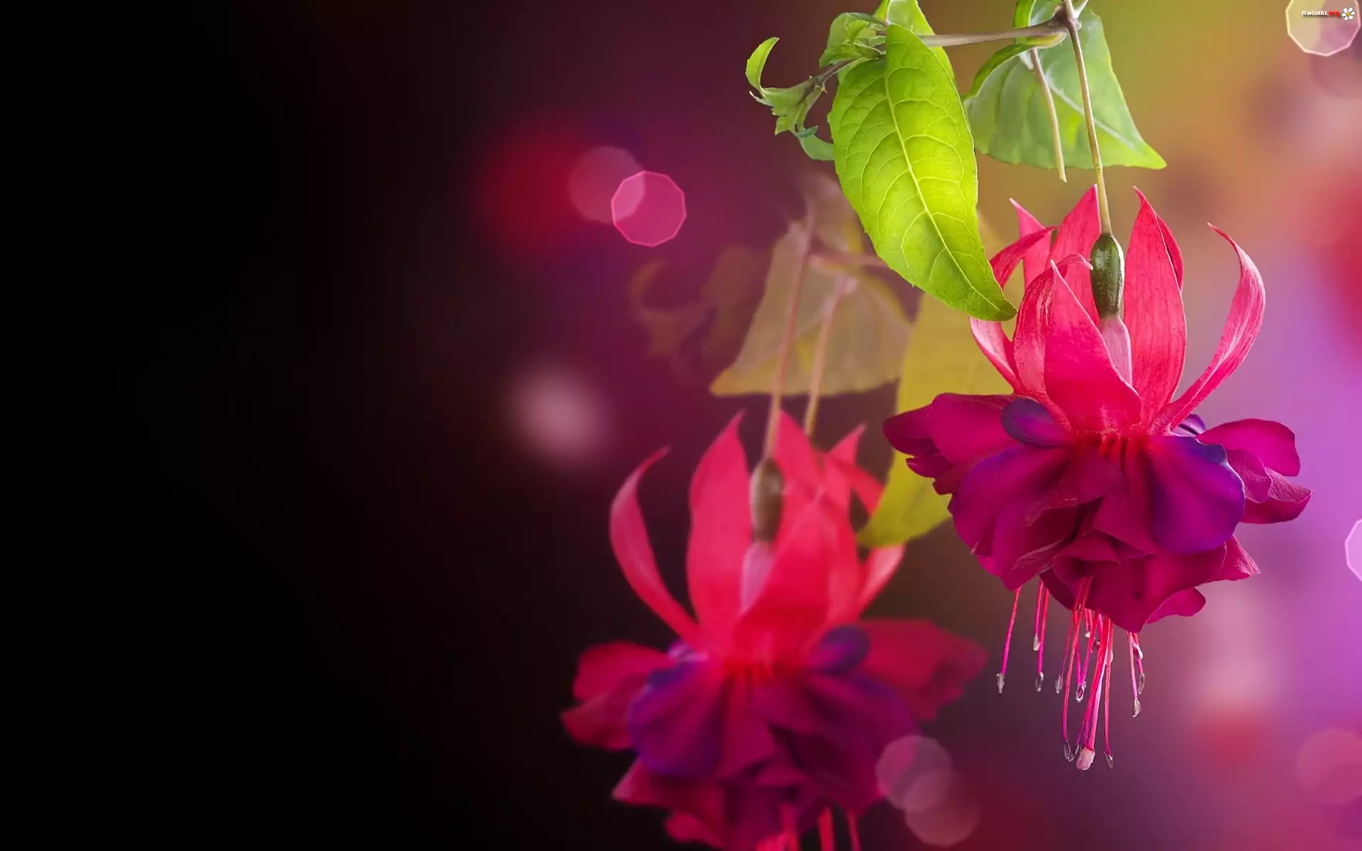 Kwiat, Liście, Bokeh, Fuksja - Zdjęcia