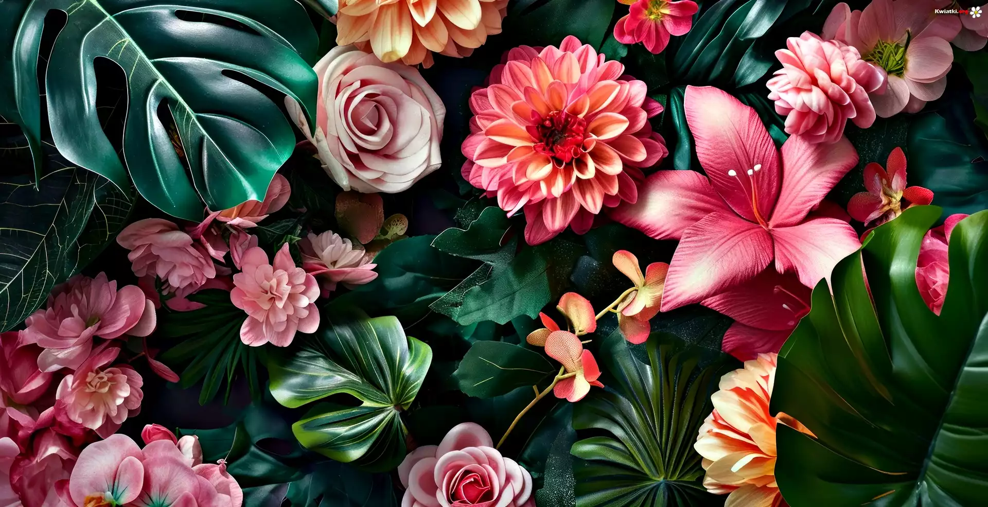 Zielone, Liście, Kwiaty, Kolorowe, Grafika - Zdjęcia