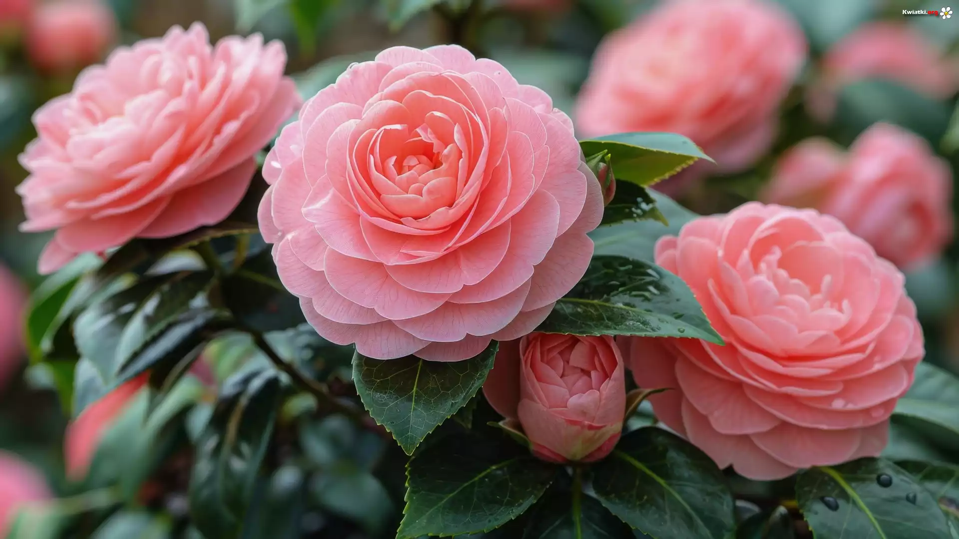 Kwiaty, Różowe, Kamelie, Liście - Zdjęcia