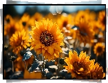 Kwiaty, Żółte, Słoneczniki, Liście - Zdjęcia