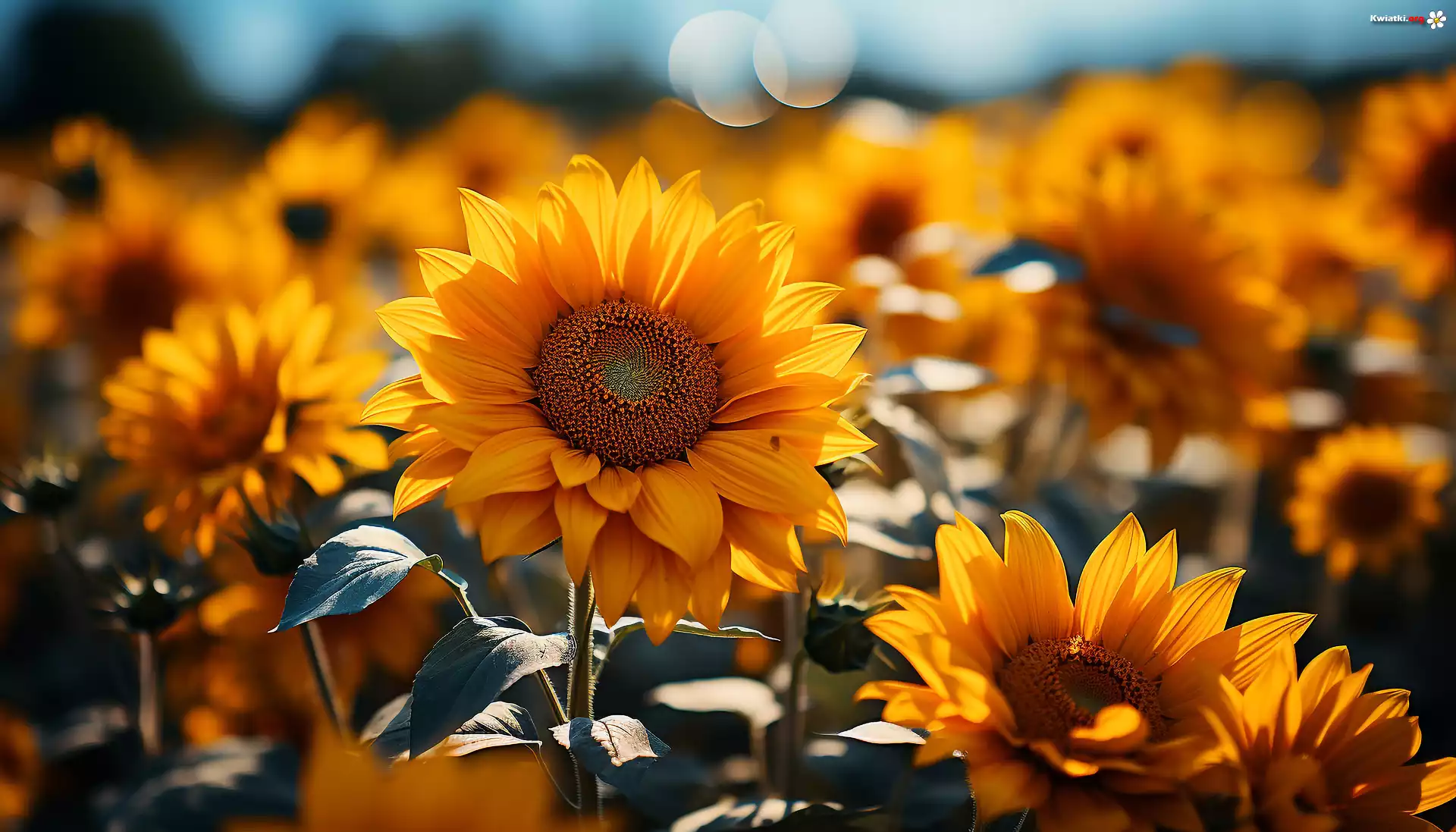 Kwiat Kwiaty, Żółte, Słoneczniki, Liście
