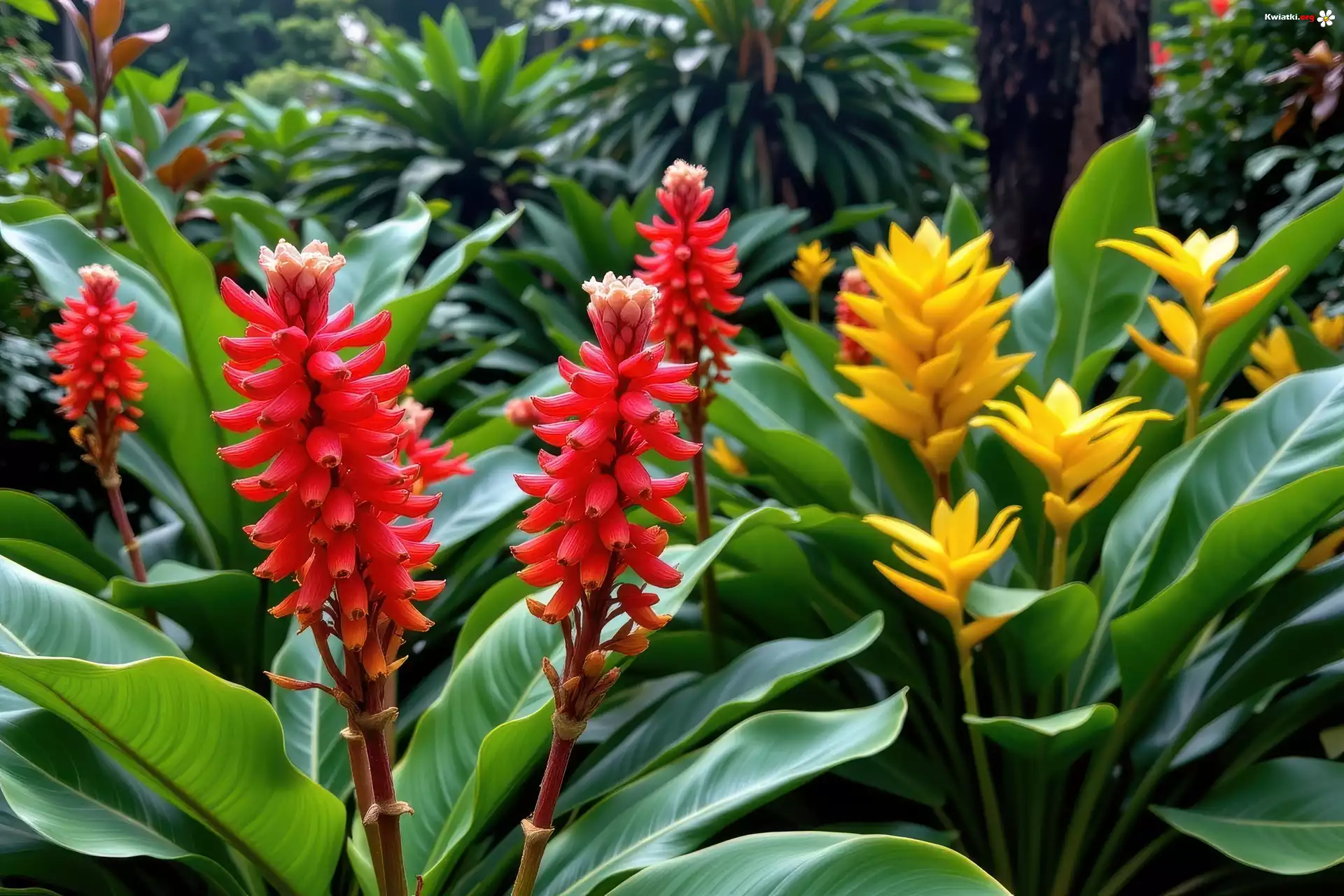 Kwiaty, Czerwone, Żółte, Liście - Zdjęcia