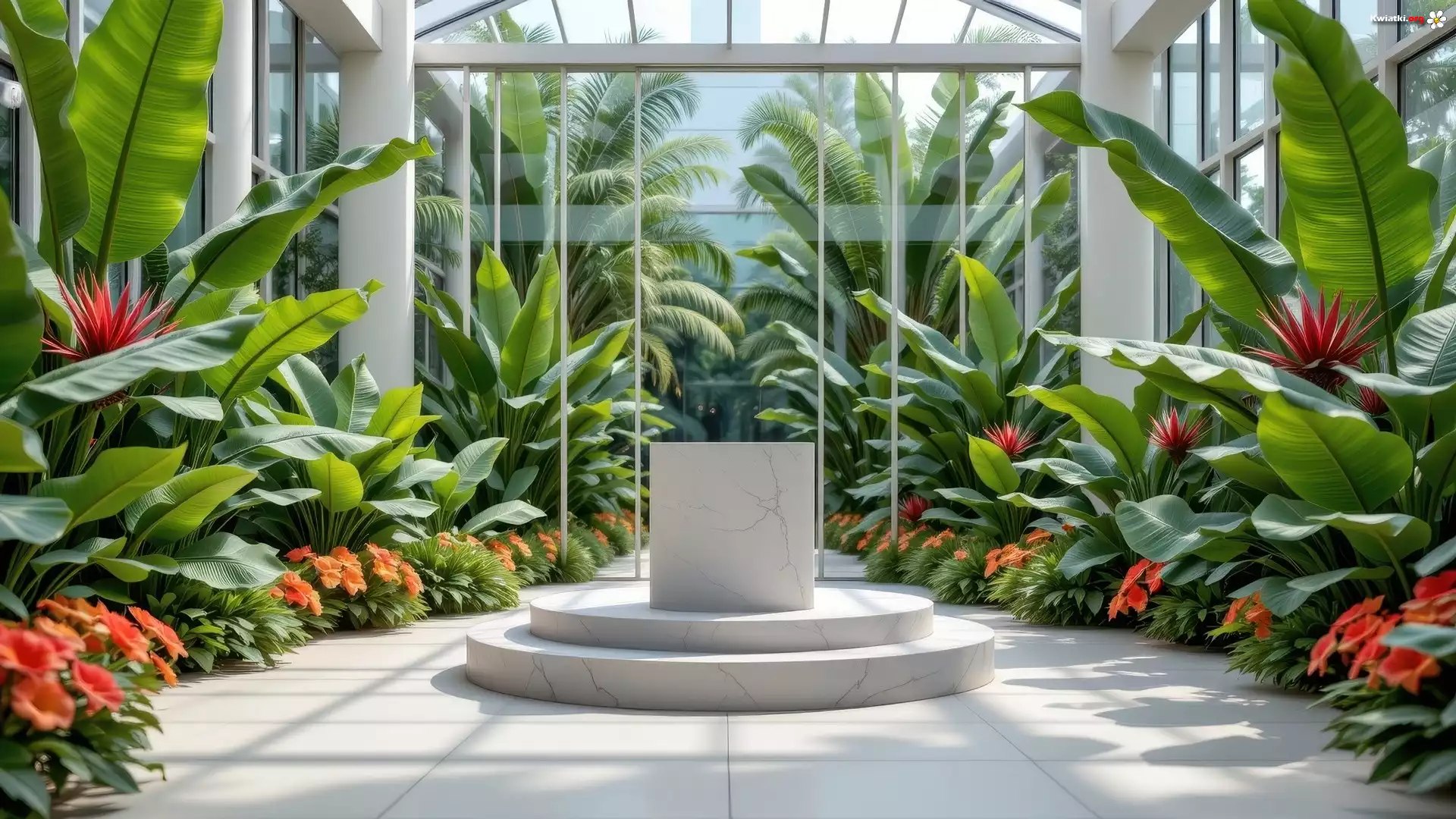 Podium, Kwiaty, Palmy, Liście - Zdjęcia