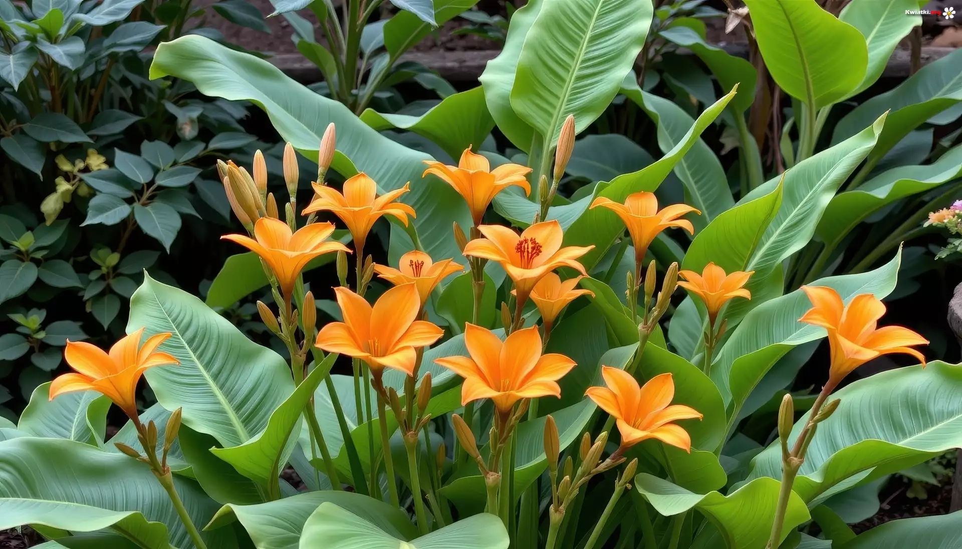 Kwiat Pomarańczowe, Lilie, Duże, Liście