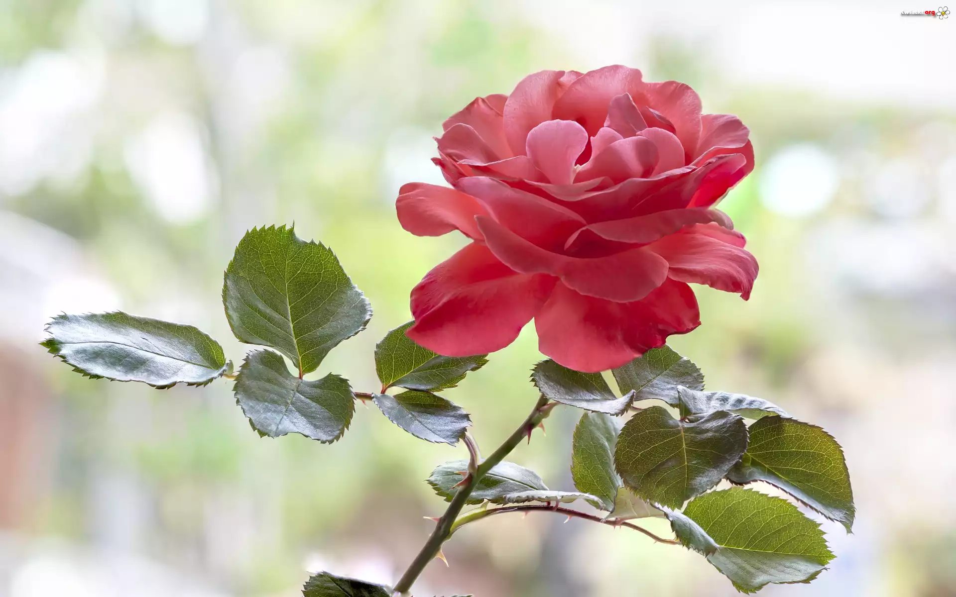 Kwiat, Róża, Czerwona, Liście, Jasne tło - Zdjęcia