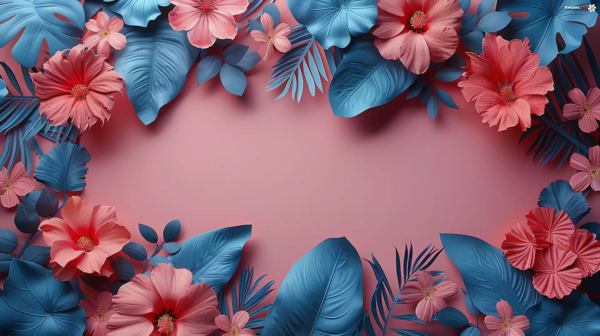 Różowe, Kwiaty, Niebieskie, Liście, Grafika, Tło - Zdjęcia