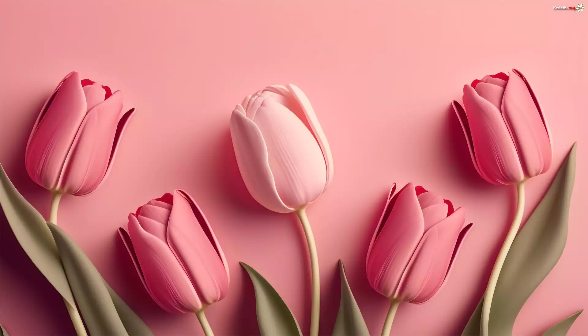 Kwiat Kwiaty, Różowe, Tulipany, Liście, Różowe, Tło, 2D