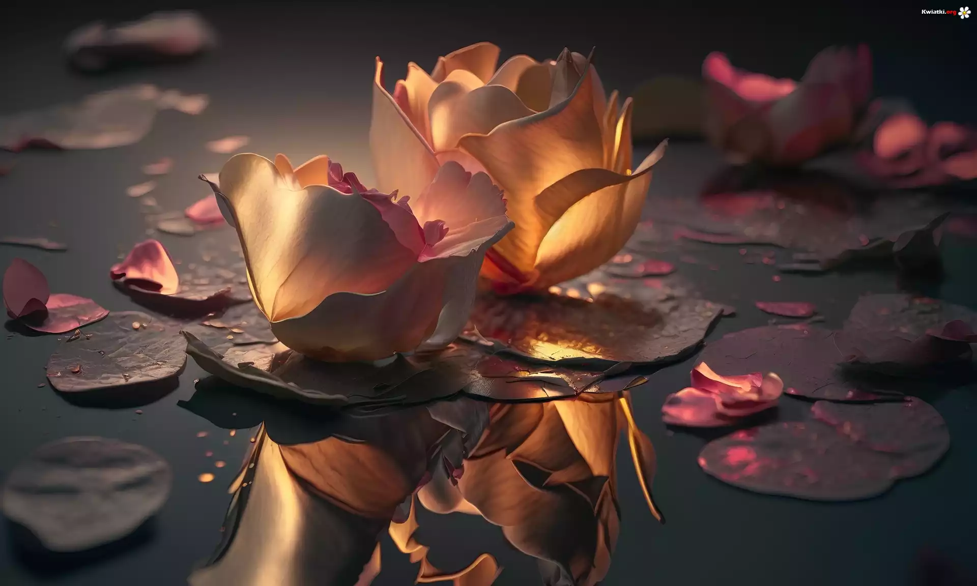 Kwiaty, Liście, Woda, Światło, Grafika - Zdjęcia