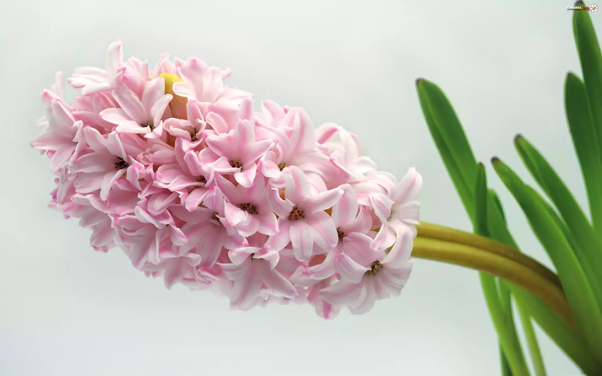 Kwiat Kwiat, Hiacynt, Różowy, Liście, Łodyga, Zbliżenie