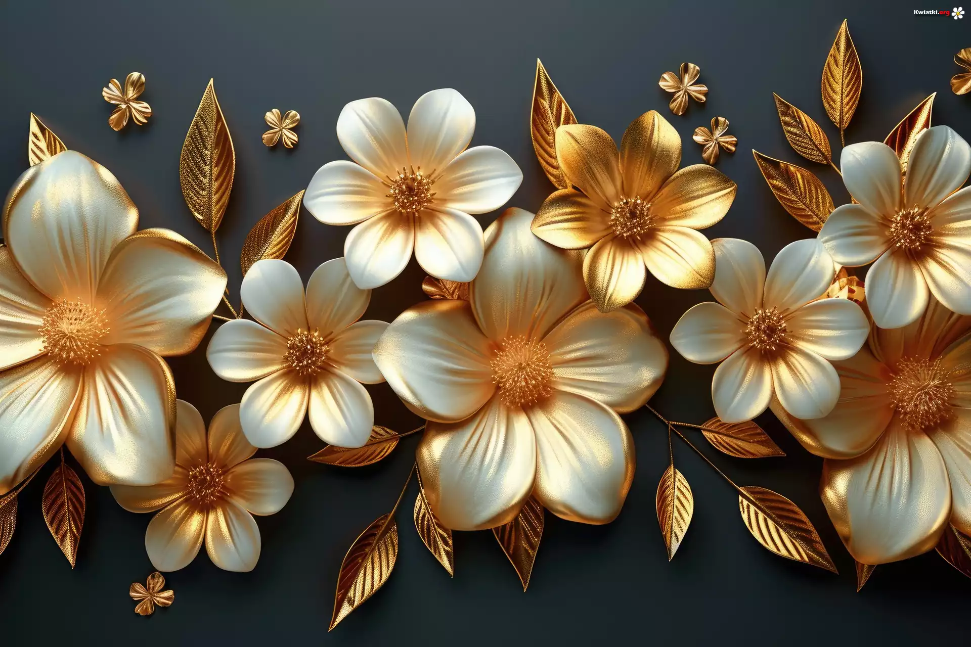 Biało-złote, Kwiaty, Listki - Zdjęcia